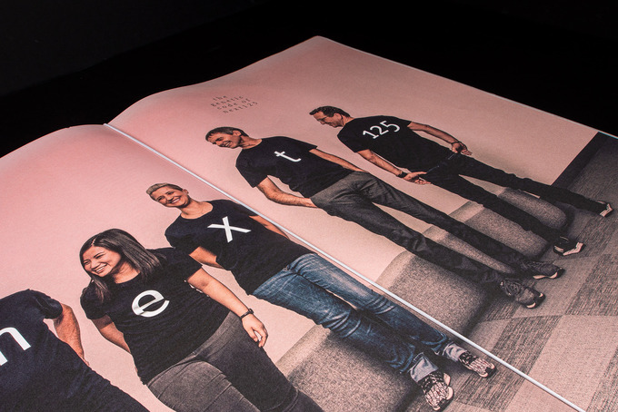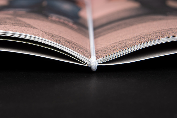Bei der, sagen wir jetzt einfach Gummibindung, fertigen wir zuerst einen Lagenfalz. Dieser ist schon mal sehr ähnlich wie bei der Rückstichheftung. Jedoch schießen wir keine Klammern in das Produkt, sondern führen lediglich einen 3-seitigen Beschnitt durch.