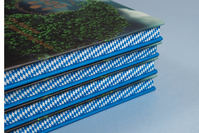 Das Reinheitsgebot wird 500 Jahre. Mehr als ein Grund zur Auflage eines Buches. Das Besondere ist sicher der Farbschnitt mit bayrischen Rauten. Überzug aus Leinen mit goldener Heißfolienprägung. Der Schutzumschlag wurde Cellophaniert und ebenfalls mit einer goldenen Heißfolie geprägt. Tolles Design. Wer nun Lust bekommen hat darf sich gerne an die Agentur wenden aus deren Hand das Buch stammt: Murner Wagner, Traunstein