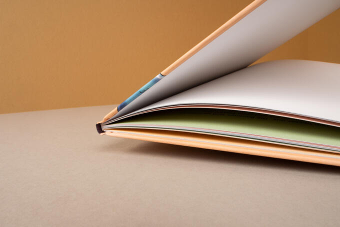 Oft werden Bücher mit einer dünnen Cellophanschicht bezogen die das Buch schützen soll. Nicht jedoch bei diesem Buch. Es gibt auch tolle Papiere, die diese Aufgabe übernehmen können. Das sind spezielle Bezugspapiere die für Bücher verwendet werden. Sie finden oft bei Kunstbüchen Anwendung und eben auch bei diesem Projekt.